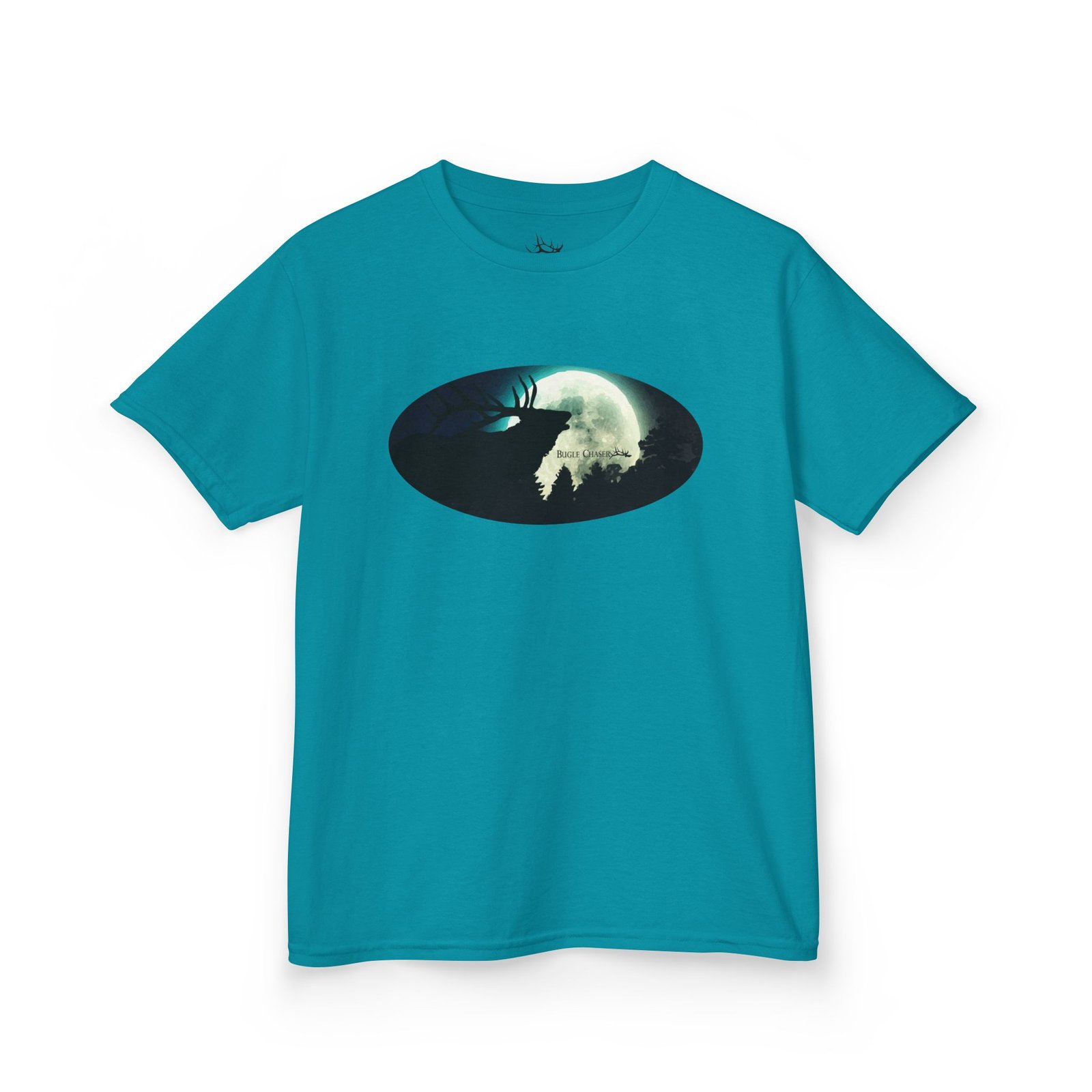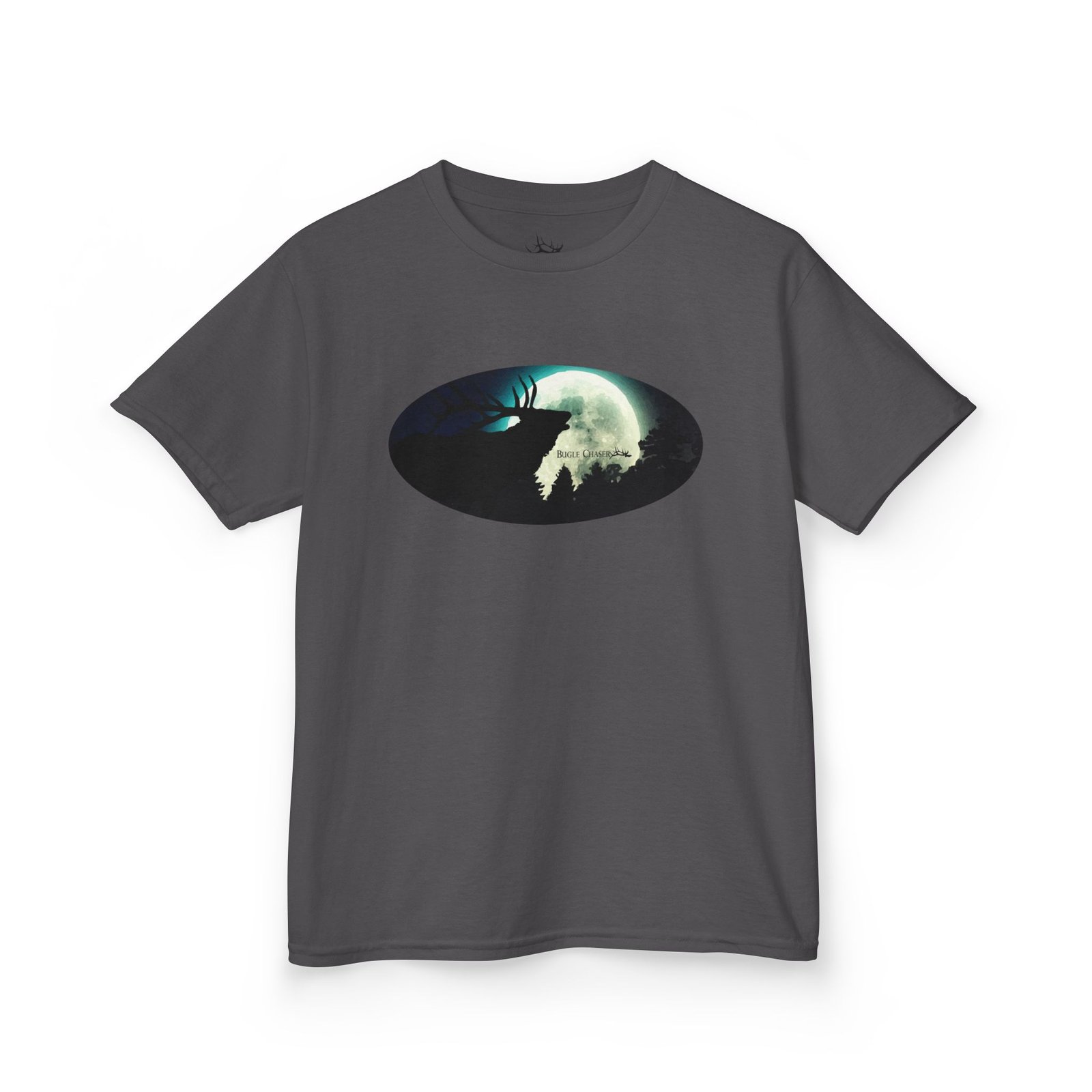 This kids tee carries a quiet, adventurous mood — a soft canvas with a moody oval graphic that hints at forest nights and distant northern lights. a Bull bugling into the moon light. Lightweight but sturdy midweight cotton keeps kids comfortable through playgrounds, rainy-day forts, and bedtime stories about wild places. The classic crew neck and relaxed fit make it easy to layer under jackets or wear on its own. It’s for children who love small mysteries: a silhouette of trees, a glowing moon, and the suggestion of movement that sparks imagination. Durable stitching and shape-retaining details mean the graphic stays centered and the shirt stays wearable after washes and rough play.